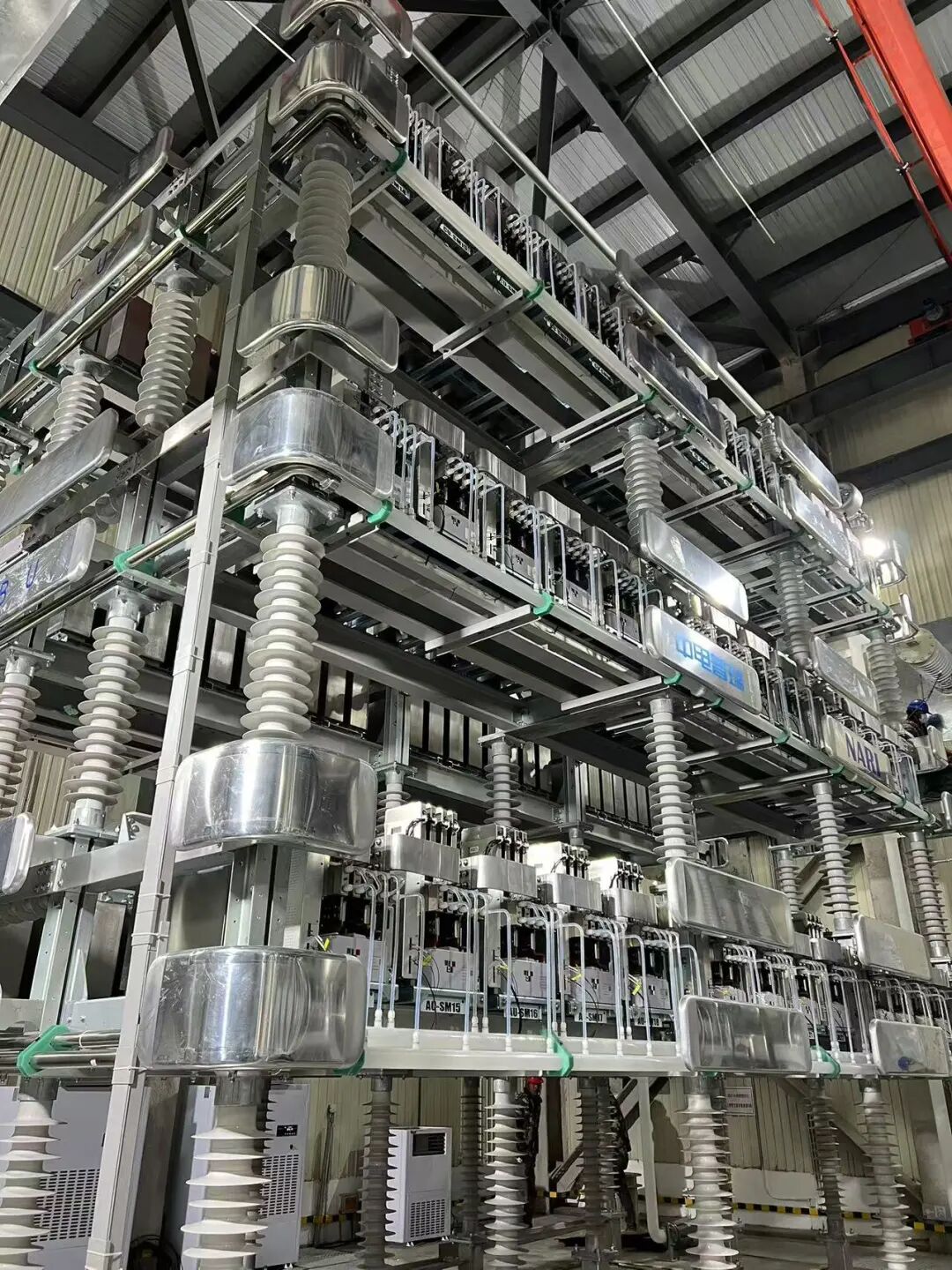 世界首套电网侧带超容构网型SVG阀厅外观(萨嘎站)据了解,此次电网侧带超容构网型SVG建设过程仅历时5个月,是截至目前世界技术最先进、海拔最高、支撑最强的电网保供工程。其中,220千伏萨嘎变电站电网侧带超容构网型SVG项目海拔4700米、110千伏当雄变电站海拔4300米。两站项目首次采用了模块化多电平换流器+超容拓扑结构的柔性直流领域最新的前沿技术,首次采用的超级电容和高海拔IGBT(绝缘栅双极晶体管)元器件,代表了我国电力行业尖端技术装备,填补了有功惯量支撑这一电力补偿装置的技术空白。
