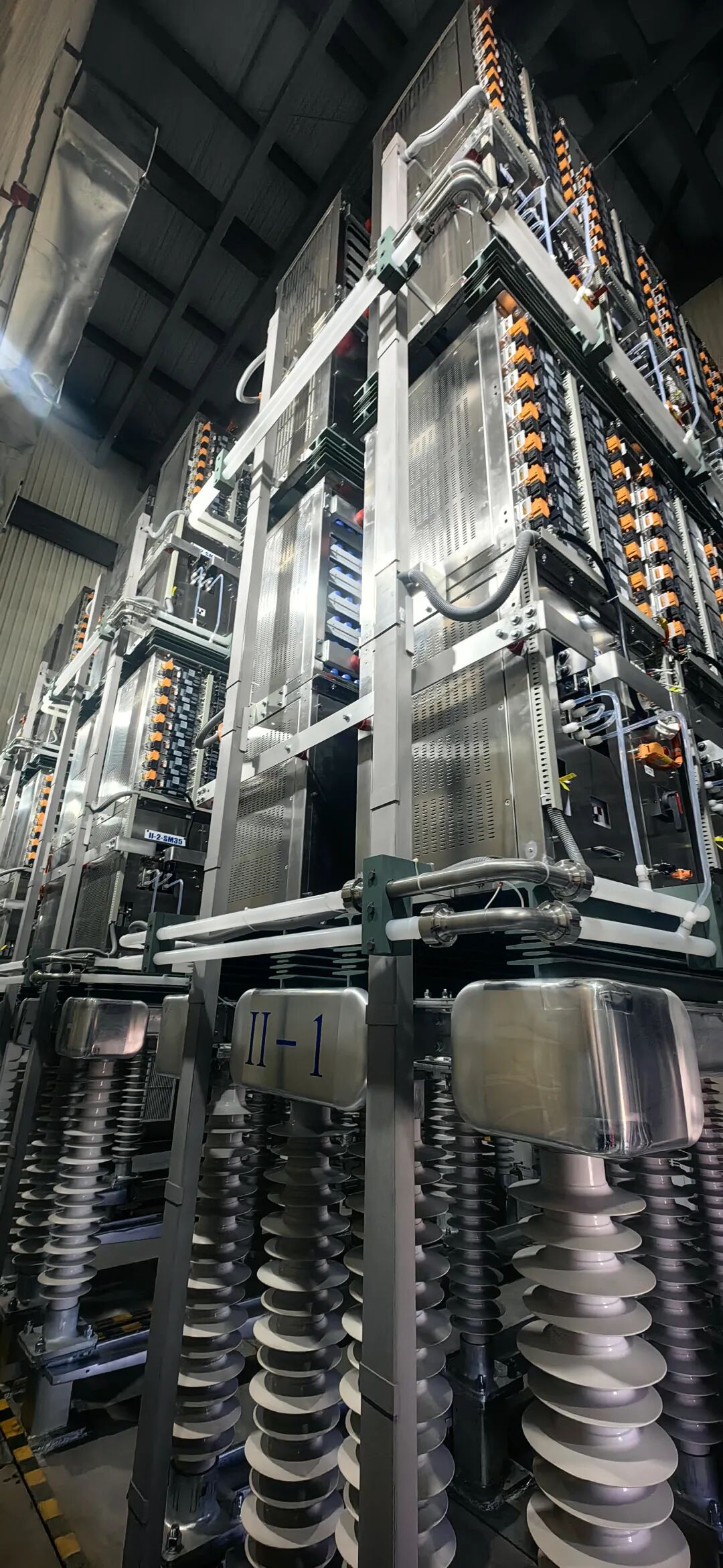 世界首套电网侧带超容构网型SVG换流阀(萨嘎站换流阀过道)SVG“是静止无功发生器”的英文缩写,是一种传统的电力电子设备,在电网运行领域广泛应用。但电网侧带超容构网型SVG,与传统构网型SVG相比,加装了能量密度高、充放电速率快的超级电容器,具有高过载、快响应、有功支撑的特征,是静止的独立电源,“主动”调节电压与频率。