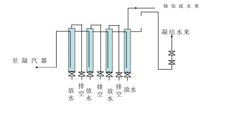 P1:轴加内的压力,kPa;P2:外界压力,kPa;h :每级水封管的高度;ρ:水的密度,kg/m3.优点:没有机械传动,因而无磨损、无卡涩;没有电气元件,因而不需要调试,不耗电;结构简单,维护方便。缺点 :停机后水封管内有残留积水,易造成金属锈蚀,因而影响再次启动时凝结水的质量;占地面积大,需挖深坑放置水封,以及仅能在加热器间压力差不大的情况下使用。